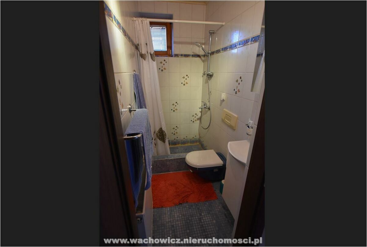 Na piętrze natomiast mieszczą się trzy sypialnie, łazienka, osobne WC i hol. W holu znajduje się wyłaz na strych.