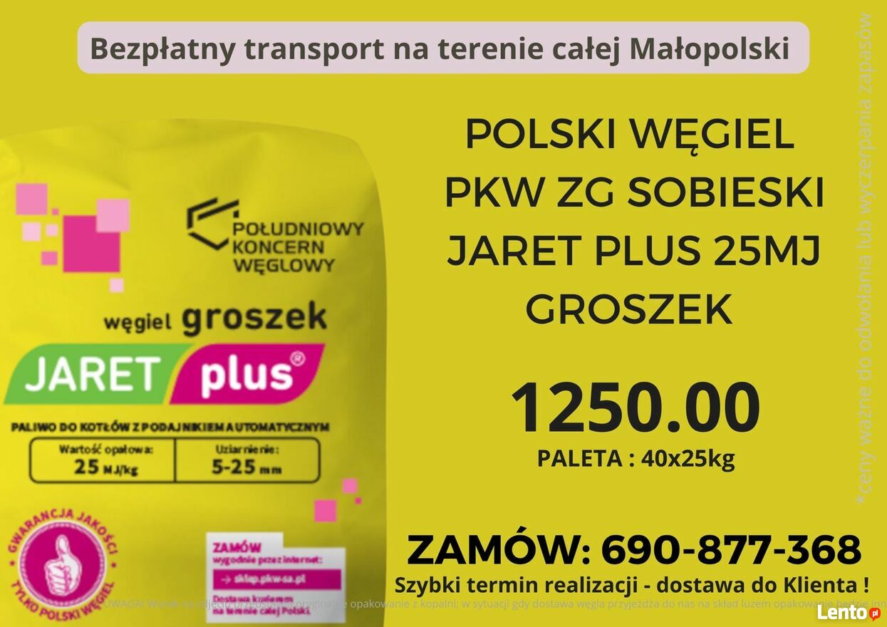 JARET PLUS 25 MJ-POLSKI WĘGIEL GROSZEK-DOSTAWA SŁOMNIKI