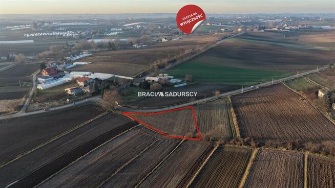 Około 60ar z możliwością dokupienia sąsiedniego terenu . Bardzo dobre połączenie z Krakowem trasa S7.Działka płaska ...